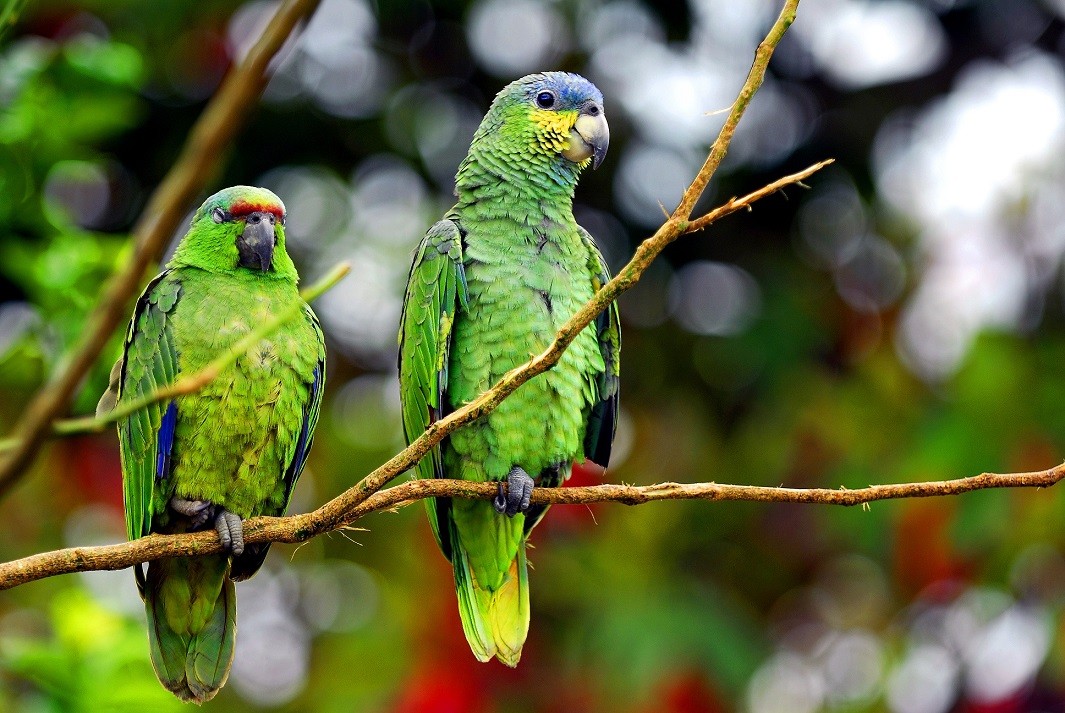 Rocafuerte-Napo-Ecuador,29/06/2006.Expedicion Conociendo La Amazônia_OTCA y La Juventud-Caminos de Orellana. Dos loros :Amazona amazonica(der) i Amazona festiva(isq).