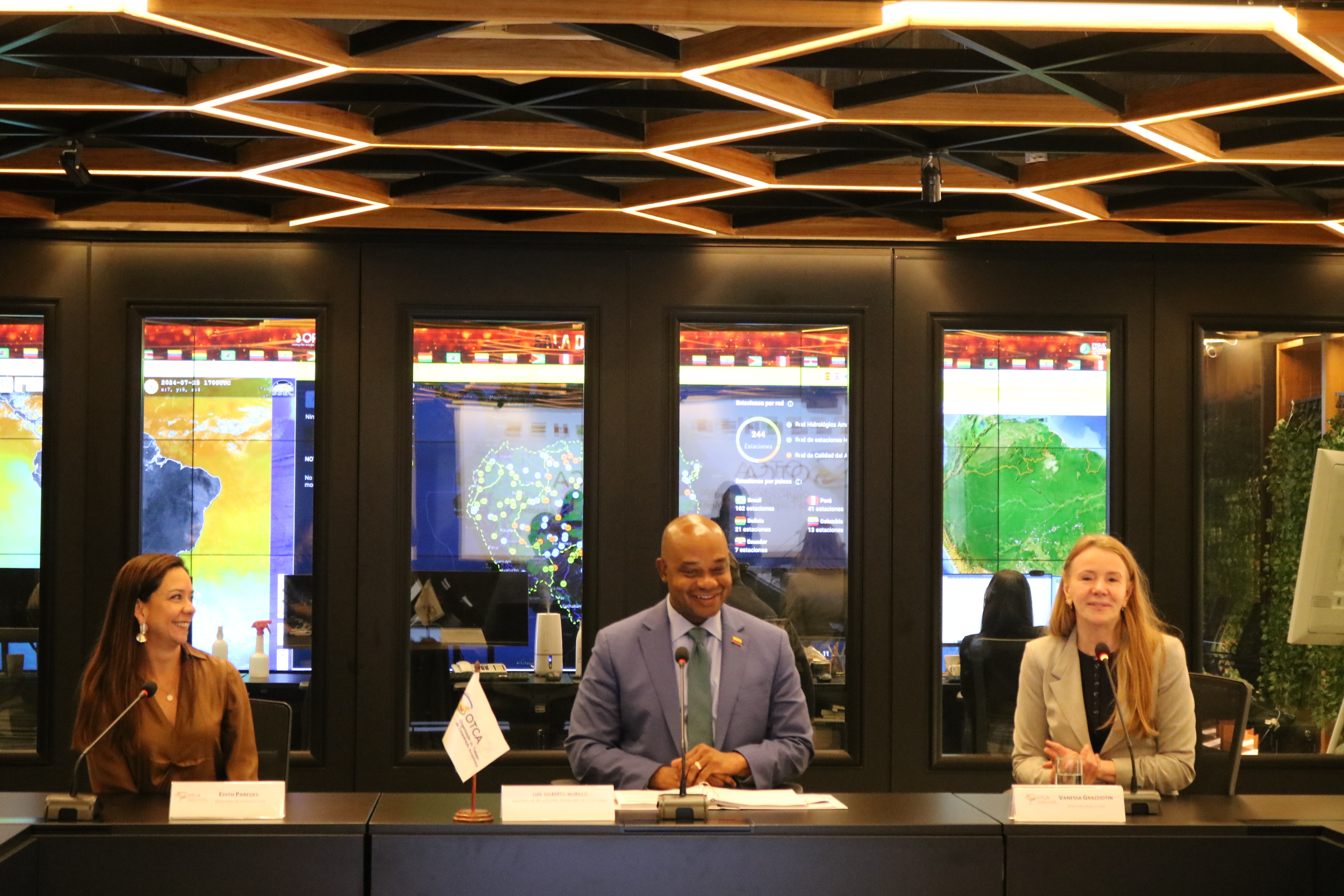 Vanessa Grazziotin, Directora Ejecutiva de la OTCA, y Edith Paredes, Directora Administrativa, dieron la bienvenida al Canciller Murillo, subrayando la importancia de esta visita para avanzar en los objetivos comunes de conservación y desarrollo integral de la región amazónica. En sus intervenciones, ambas directoras resaltaron la necesidad de una acción conjunta y coordinada para enfrentar los desafíos ambientales y socioeconómicos que afectan a la Amazonía y sus habitantes.