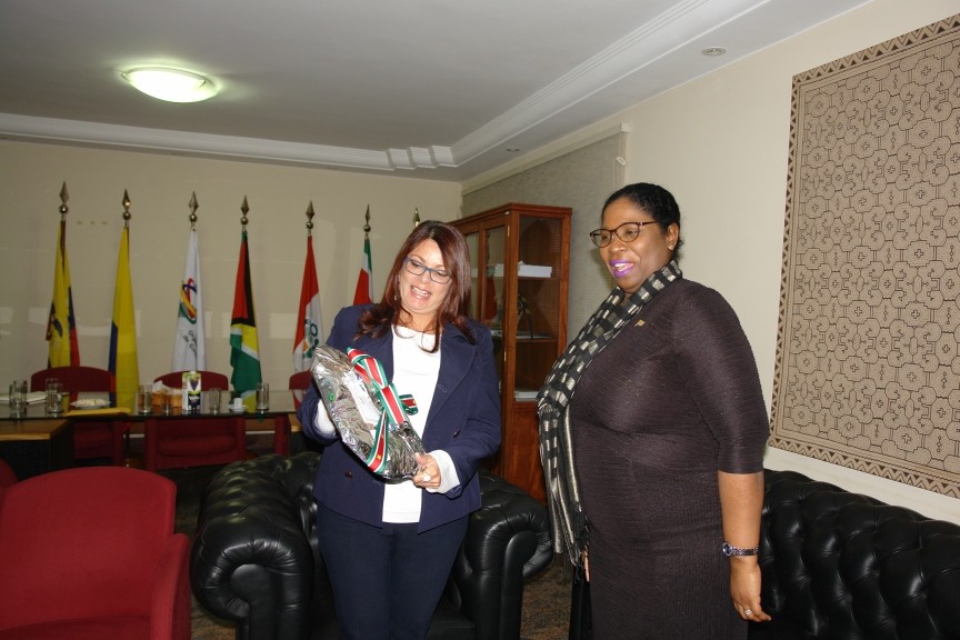 Brasilia, February 20, 2018.– The minister of Foreign Affairs of Suriname, Yldiz Pollack Beighle, paid a courtesy visit to the Secretary General of ACTO, María Jacqueline Mendoza. On the occasion, they discussed various topics such as regional cooperation, development of programs, among other issues.