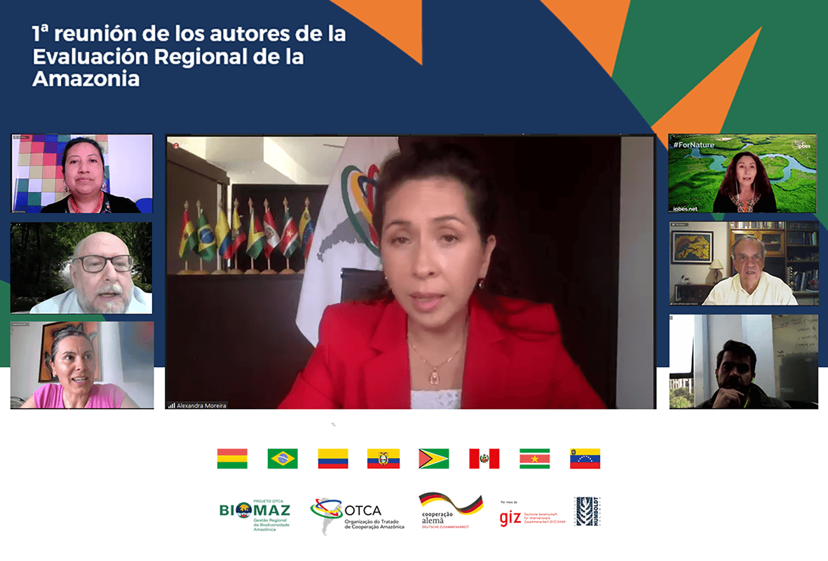 Em evento virtual, realizado nesta sexta-feira, 08 de outubro de 2021, a Secretaria Permanente da OTCA, coordenou a realização da 1ª Reunião de Autores da Avaliação do Estado da Diversidade Biológica e Serviços Ecossistêmicos da Amazônia. Esta avaliação é parte integral do Programa Regional de Diversidade Biológica da Região/Bacia Amazônica, aprovado em maio deste ano pelos Países Membros da OTCA.