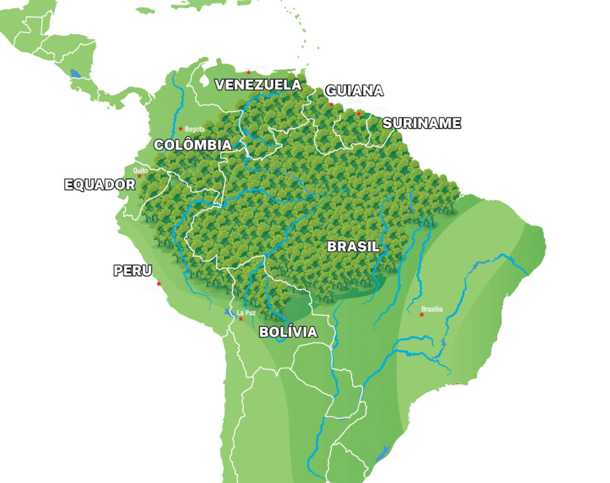 Esses países compartilham o maior bioma tropical do planeta, que abriga mais de 50 milhões de pessoas e concentra cerca de 20% da água doce do mundo. São mais de 7,5 milhões de km² de floresta, com uma diversidade única de povos, culturas e ecossistemas que sustentam a vida e o equilíbrio climático global.