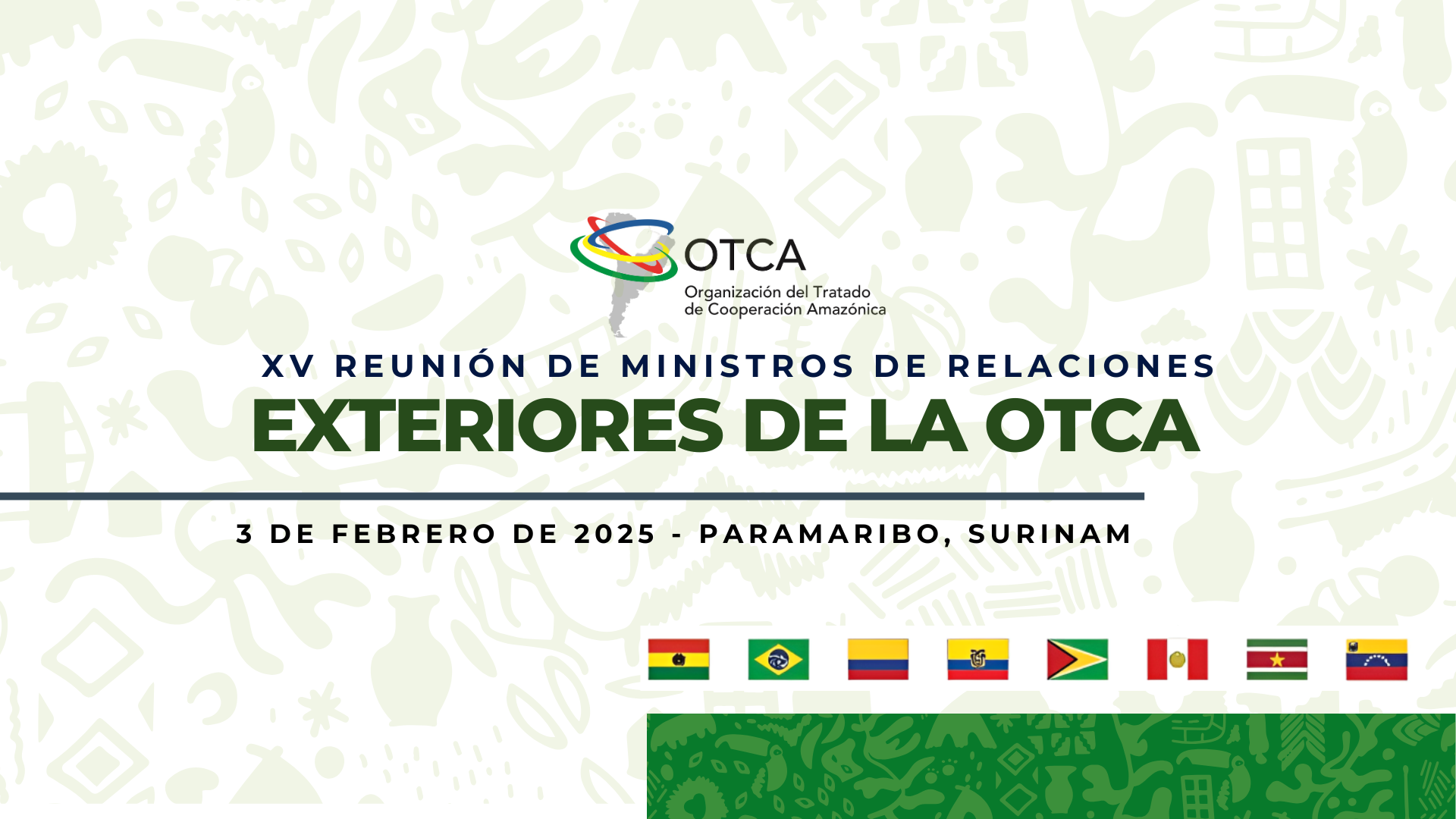 Por primera vez, Surinam será anfitrión de esta reunión ministerial, reafirmando su compromiso con la integración amazónica y el trabajo conjunto de los ocho países miembros de la OTCA: Bolivia, Brasil, Colombia, Ecuador, Guyana, Perú, Surinam y Venezuela.